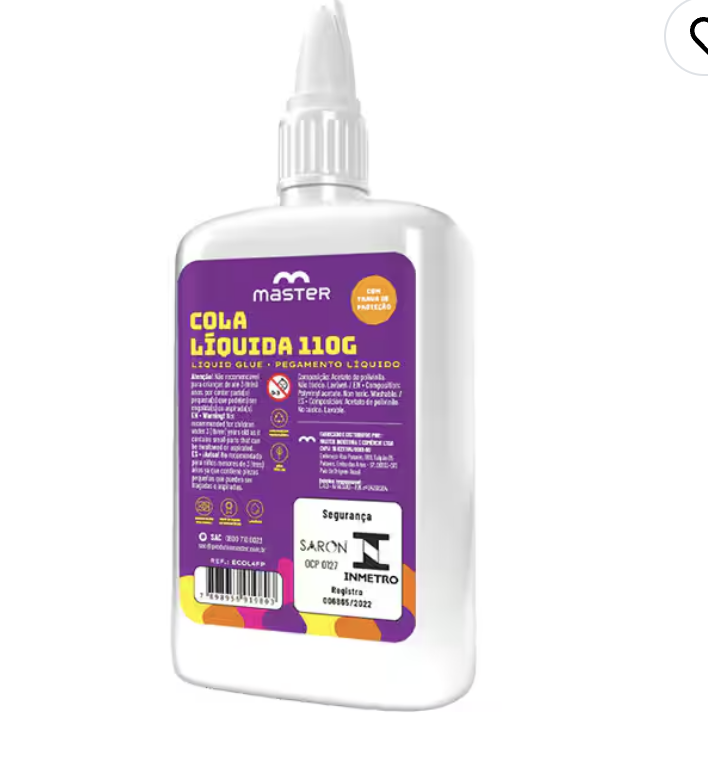 A Cola Líquida Master de 110g é ideal para uso escolar, artístico e em escritório. Com fórmula segura e não tóxica, ela é lavável e apresenta excelente aderência em papéis, cartolinas e outros materiais. A embalagem possui trava de proteção e uma espátula espalhadora para facilitar a aplicação.