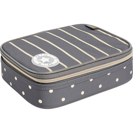 O Estojo Box Académie Listras e Poás é prático, espaçoso e ideal para quem possui muitos lápis, canetas e outros materiais e acessórios. Além de facilitar seu dia a dia na escola, esse estojo possui material resistente, é estruturado, espaçoso e possui divisória central com elásticos que auxiliam na organização do material. Possui fechamento em zíper.