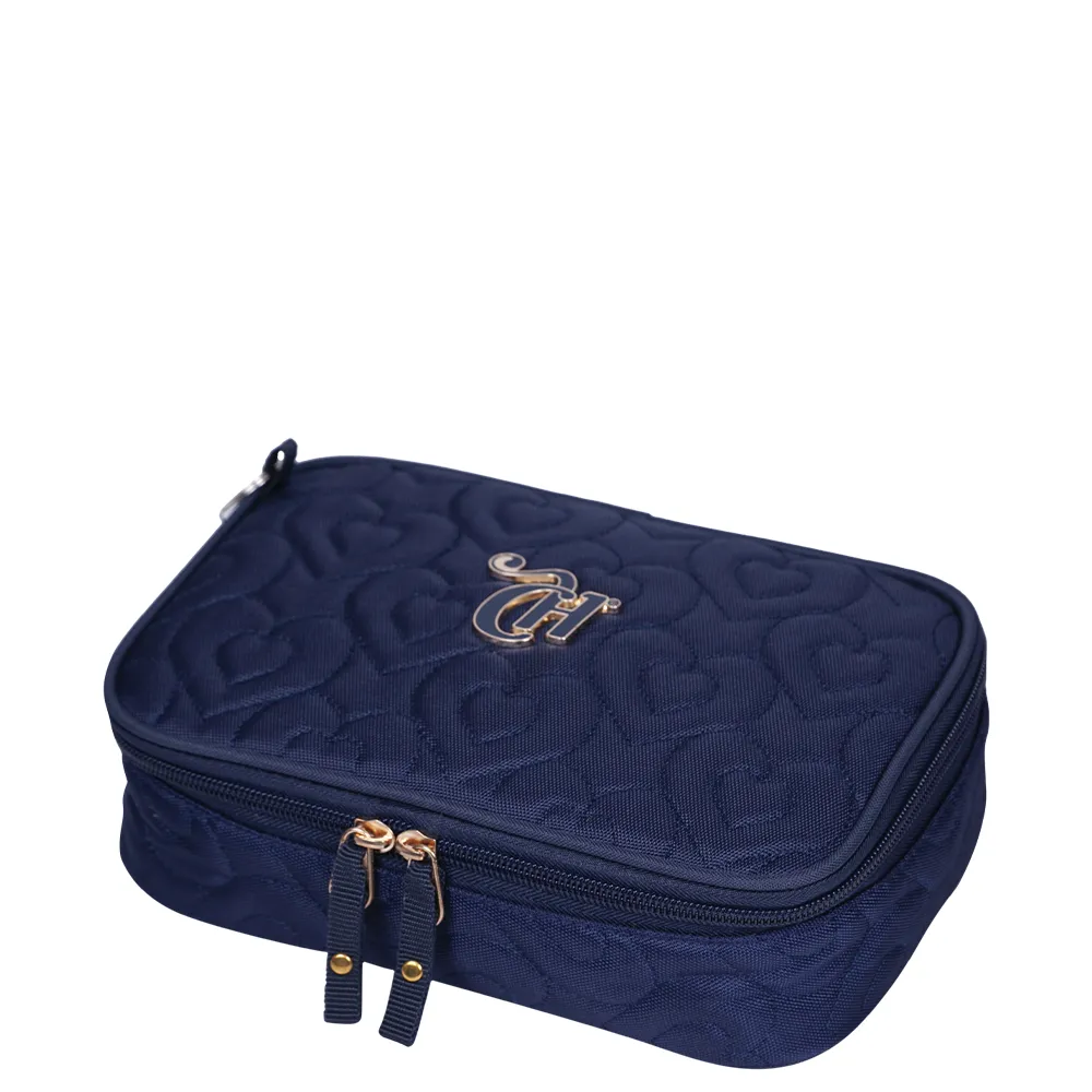 E que tal viver um belo romance junto do Estojo Especial Capricho Crush Azul Marinho? Produzido em Náilon, um material resistente. Possui divisória interna, bolsinho interno com zíper, para colocar pequenos objetos e fechamento principal por zíper. Além disso, tem também tiras de elástico, para prender lápis e canetas, deixando tudo muito mais organizado. Este modelo acompanha um lindo acessório.