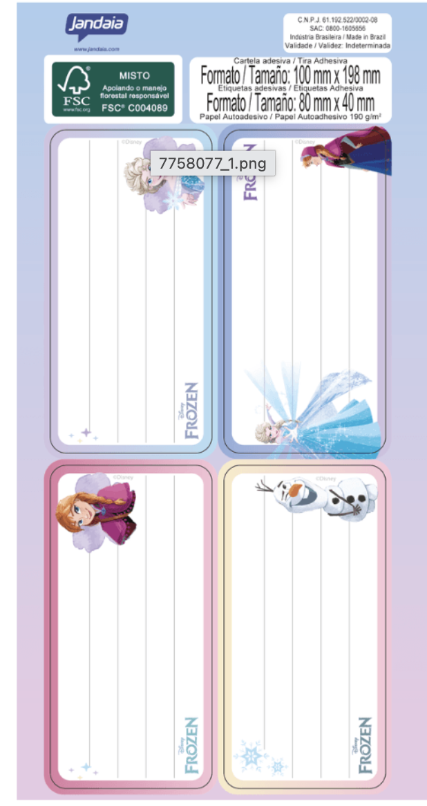 ETIQUETA ESCOLAR ADESIVA – FROZEN