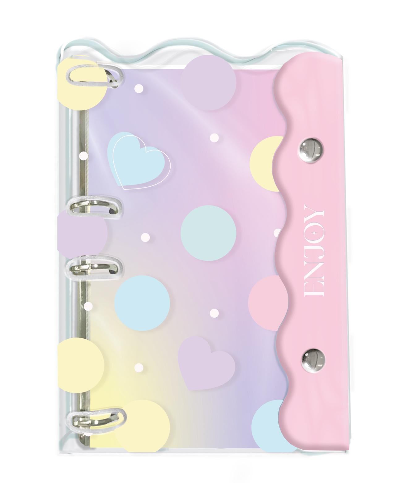| Detalhes: | Feito em PVC Cristal, 192 Folhas decoradas de gramatura 56g cada, 10 divisórias e fechamento em botão |