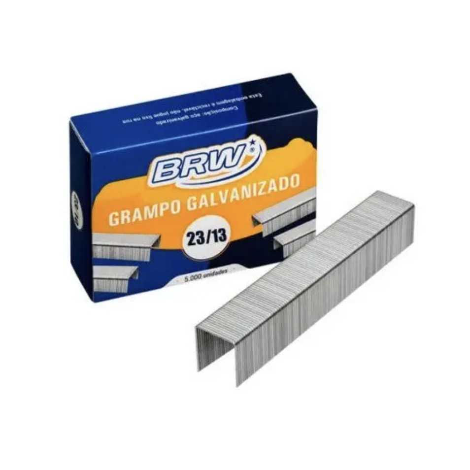 Grampo para grampeador em aco galvanizado, com perfuracao sugerida entre 70 a 100 folhas com base em papeis sulfites de 75gm. Geralmente, utilizado em graficas e escritorios.