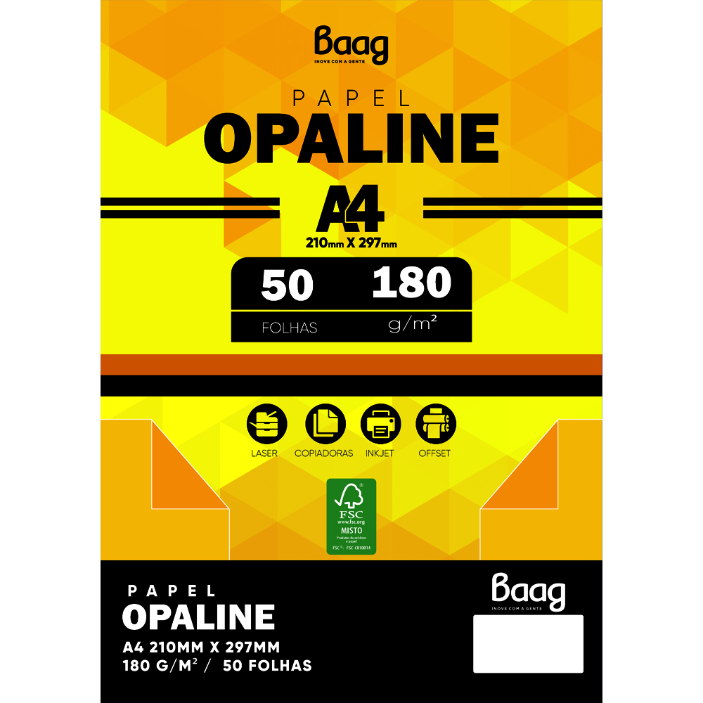 Folhas: lisas Formato: 210mm x 297mm Gramatura: 180 g/m² Pacote: 50 folhas