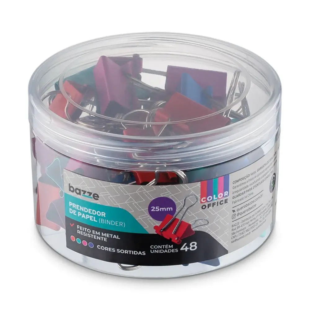 "Prendedores de papel super práticos e modernos feitos de metal resistente. Com tamanho de 25mm e cores sortidas.