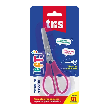 A tesoura Lefty é especial para canhotos! Com lâmina de aço inoxidável de 1,5cm, pontas arredondadas e 13cm de comprimento.